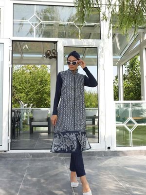 Starinci Mayo Lacivert Uzunkol Halka Desenli Tam Kapalı Mayo