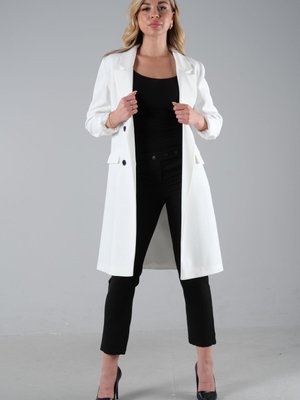 Ardanewline Ekru Kruvaze Astarlı Uzun Ceket
