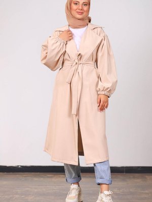 meqlife Bej Maria Kuşak Detaylı Trençkot