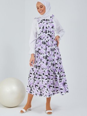 meqlife Lila Oversize li Çiçekli Jile Gömlek Elbise