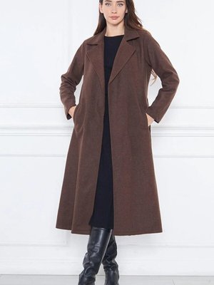 Cng Moda Acı Kahve Kaşe Astarsız Kuşaklı Kaban