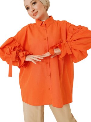 SAGA Turuncu Balon Kol Düğmeli Poplin Tunik