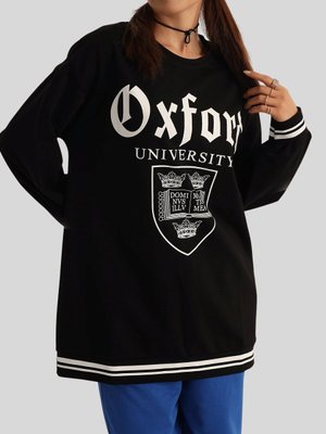 ADYES Siyah Bisiklet Yaka Önü Yazı Baskılı İki İplik Sweat
