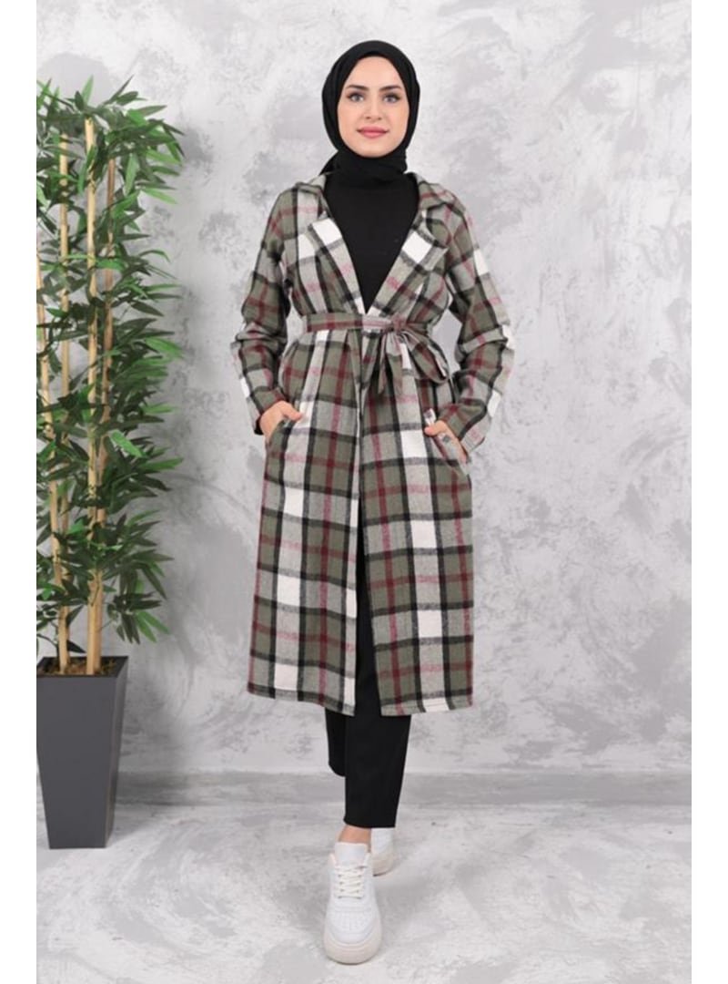Bestenur Haki Elçin Çizgi Detaylı Çift Cepli Hırka