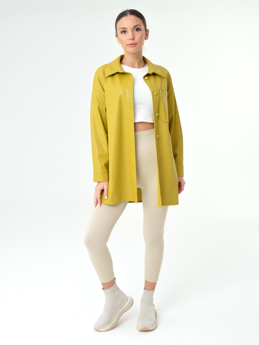 SOUL Limon Sarısı Deri Görünümlü Ceket