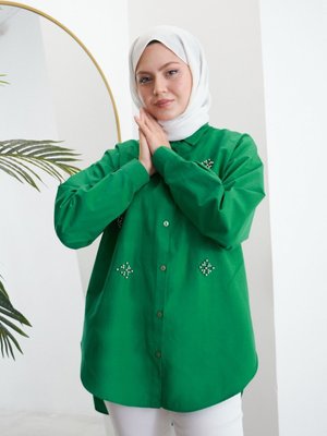 Spesniks Yeşil Önü İnci Detay Terikoton Tunik
