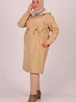 Moda Rosa Bej Büyük Beden Fermuarlı Bondit Kap