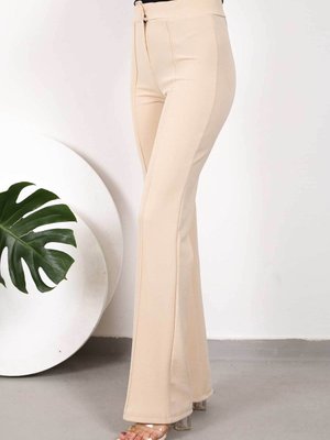 İmajbutik Bej Çimalı Ispanyol Paça Pantolon