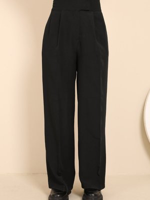 İmajbutik Siyah Yüksek Bel Bol Paça Kumaş Pantolon