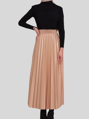 Butik Buruç Bej Haki Piliseli Belden Lastikli Uzun Etek
