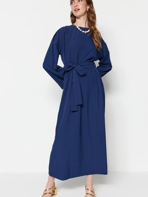 Trendyol Modest Lacivert Beli Kuşaklı Paraşüt Kumaş Geniş Kalıp Dokuma Elbise