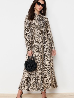 Trendyol Modest Bej Animal Desenli Viskon Dokuma Elbise