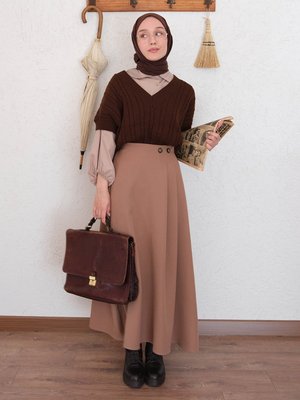 Ceylan Otantik Karamel Çift Düğmeli Etek
