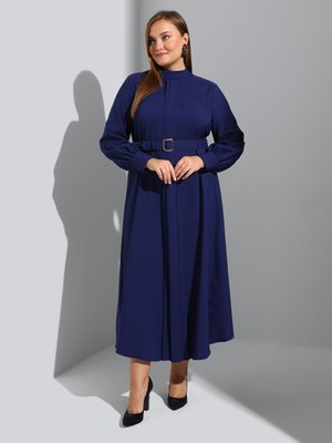 Alia Kemer Detaylı Büyük Beden Elbise Lacivert