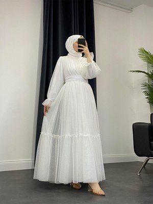 Mervenakyuz Quin Pıtpıt Abiye Elbise Beyaz