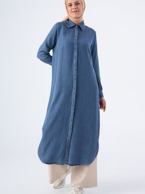 Allday Mavi Denim Yırtmaçlı Uzun Gömlek Tunik