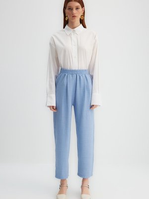 Trendyol Modest X Kevser Sarıoğlu Mavi Beli Lastikli Dokuma Pantolon