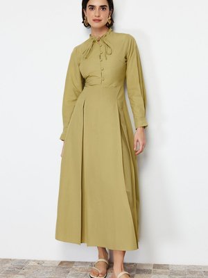 Trendyol Modest Haki Kloş Etekli Pamuklu Dokuma Elbise