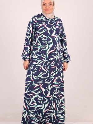 Moda Rosa Lacivert Büyük Beden Kolu Lastikli Kristal Elbise