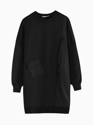 Puane Deri Ve Cep Detaylı Siyah Scuba Sweatshirt