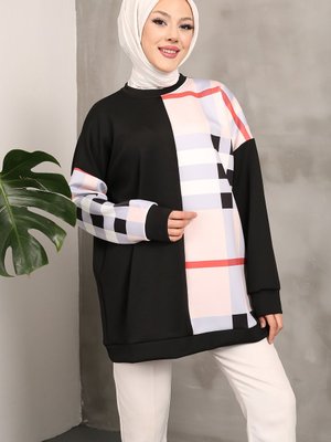 İmajbutik Siyah Ön Kol Çizgili Scuba Sweatshirt