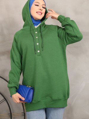 İmajbutik Yeşil Kapüşonlu Üç İplik Şardonlu Sweatshirt