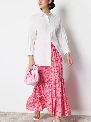 Trendyol Modest Pembe Çiçek Desenli Dokuma Etek