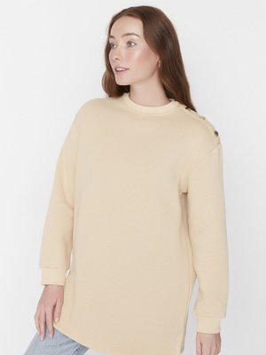Trendyol Modest Bej Bisiklet Yaka Omuzları Düğmeli İçi Tüylü Örme Sweatshirt