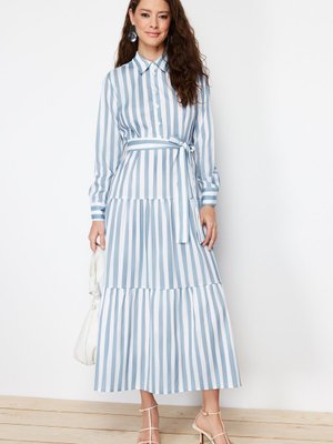 Trendyol Modest Mavi Astarsız Çizgili Dokuma