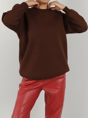Butik Buruç Kahve İçi Şardonlu Düz Sweat