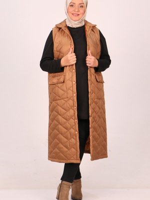 Moda Rosa Kahverengi Büyük Beden Çıtçıtlı Kapitone Yelek