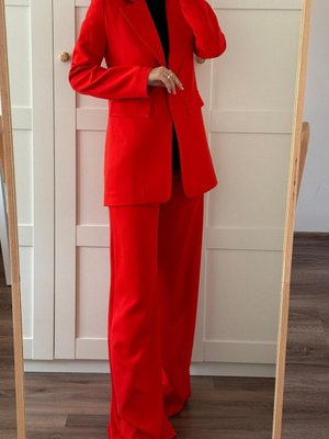 meqlife Kırmızı Uzun Bol Paça Takım Elbise
