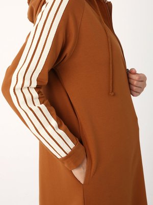 Allday Hardal Kolları Şeritli Kapüşon Fermuarlı Hırka