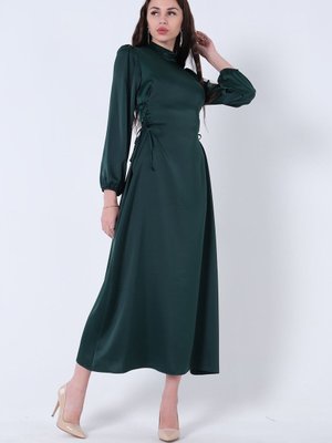 Ardanewline Zümrüt Kolları Volanlı Yandan Bağlama İp Detaylı Abiye Elbise
