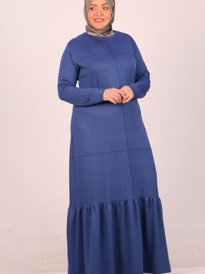 Moda Rosa İndigo Büyük Beden Alttan Fırfırlı Kristal İki İplik Elbise