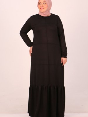Moda Rosa Siyah Büyük Beden Alttan Fırfırlı Kristal İki İplik Elbise