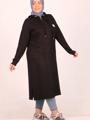 Moda Rosa Siyah Büyük Beden İki İplik Fermuar Detaylı Kristal Tunik