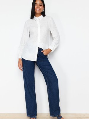 Trendyol Modest Beyaz Taşlı Şık Dokuma Gömlek