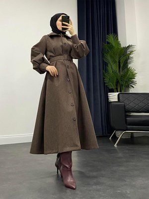 Mervenakyuz Besen Kemerli Kaban Kahve
