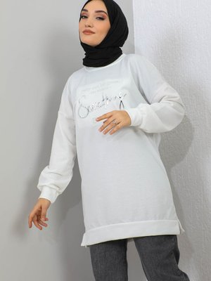 İmajbutik Krem Baskılı İki İplik Sweatshirt