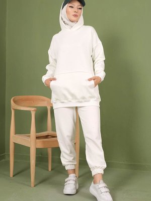 İmajbutik Krem Kapüşonlu Oversize Üç Iplik Şardonlu Sweatshirt