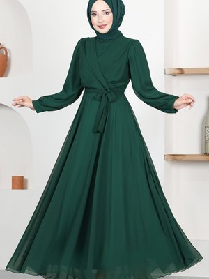 Modamerve Şifon Abiye Elbise Zümrüt