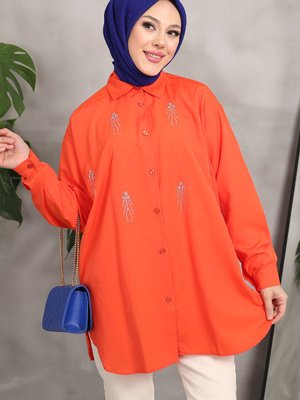 İmajbutik Orange Taşlı Yan Yırtmaçlı Terikoton Gömlek