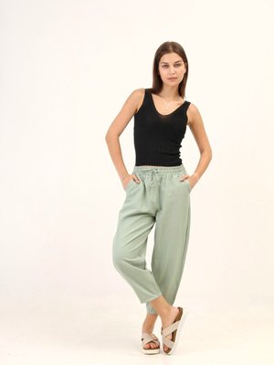 Sd Luxury Yeşil Bel Lastikli Keten Pantolon