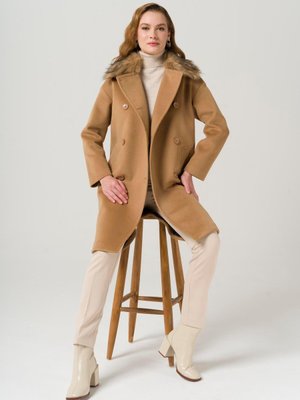 Olcay Çıkabilir Kürklü Kruvaze Kaban Kamel