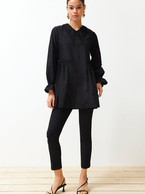 Trendyol Modest Siyah Yaka Detaylı Pamuklu Dokuma Tunik