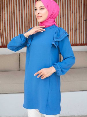 İmajbutik İndigo Omuz Güpürlü Tunik