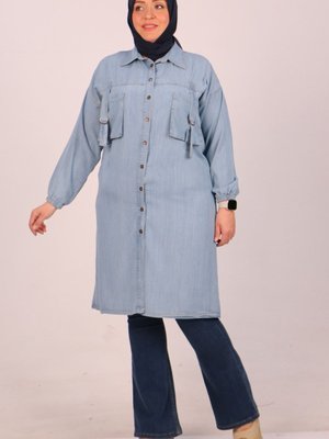 Moda Rosa Buz Mavi Büyük Beden Cep Detaylı Liyosel Tunik