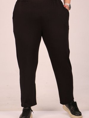 Moda Rosa Siyah Büyük Beden Yüksek Beli Lastikli Penye Pantolon