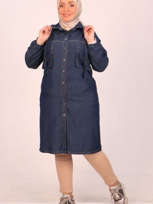 Moda Rosa Lacivert Büyük Beden Cep Detaylı Liyosel Tunik